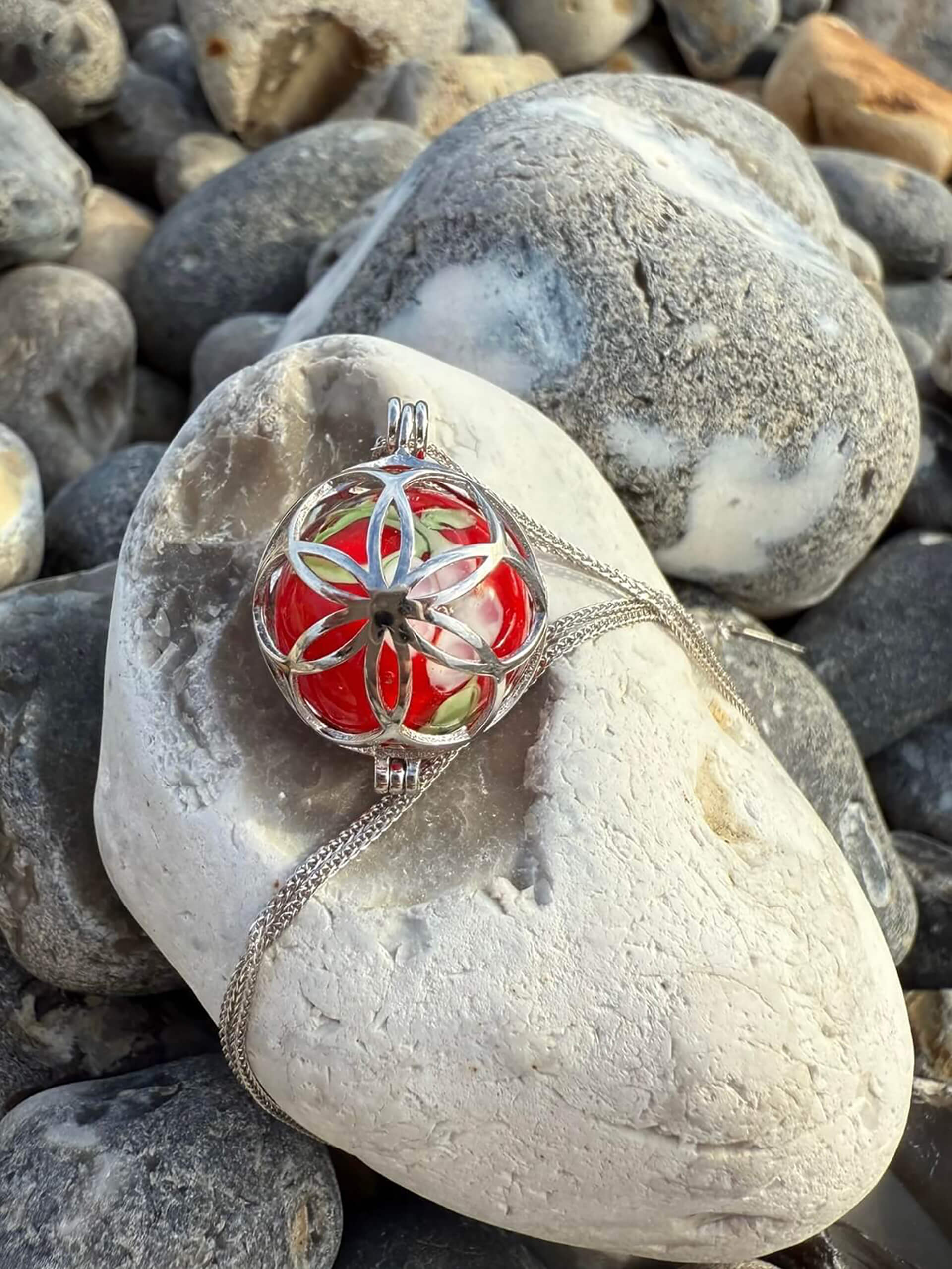 Kette mit Käfiganhänger für Deine Murmel. Mit dieser Kette kannst Du Deine Murmeln aus Murmel Balm wiederverwenden und passend zu Deinem Outfit austauschen. Einfach Anhänger öffnen und Deine Lieblingsmurmel einsetzen.